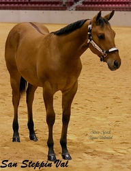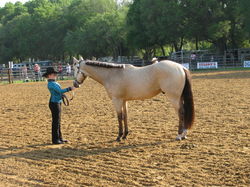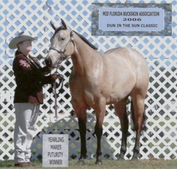 San Steppin Val, a 2005 Dun Gelding by Smoky Zebra Step and out of Hearts N Bronze, shown after going Grand at Jacksonville, FL .